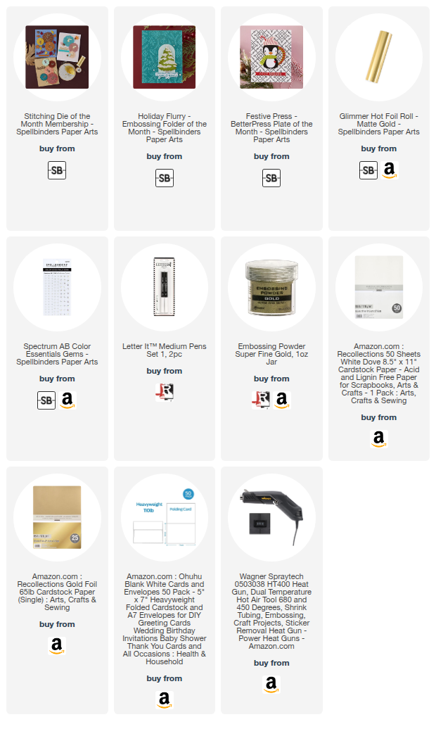 The products I’m going to use today are the Spellbinders Stitching Die of the Month for December 2025, A Perfect Blend, with a sentiment from Spellbinders Festive Press. It was the BetterPress Kit for July. And I’ll emboss my background with Spellbinders Holiday Flurry.