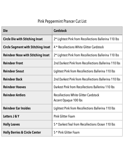 I started by die cutting the three stitching elements from Peppermint Prancer: