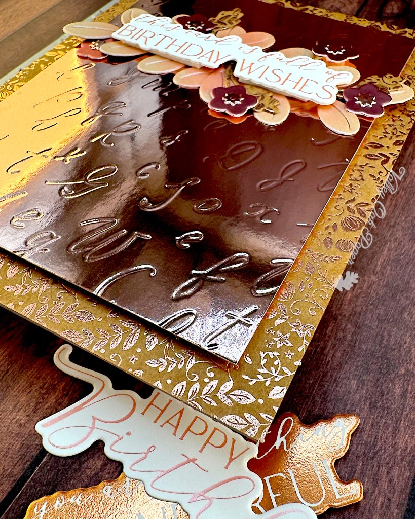 Once I had selected the cardstock for this card, it came together very quickly. Except for the sentiment, the cardstock is from an old rosegold-themed paper pack. You can achieve something similar by combining Spellbinders Rosegold Assortment Treasured Cardstock and Paper Rose Rosegold Foil Lavender and Roses 6 by 6 Paper Pad.